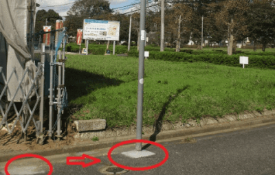 左隅の現ポール場所から移設します。