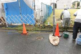 ポールの地盤をゆるめます。