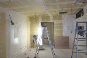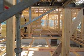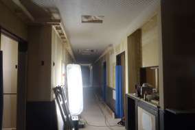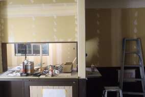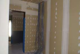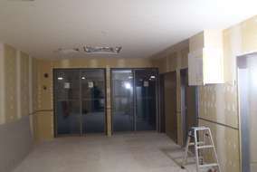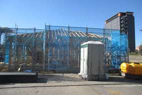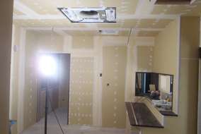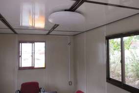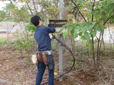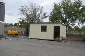 まずは仮設の事務所(作業場)を設置して、仮設のポールを立てて電気を使用できるようにします。