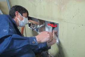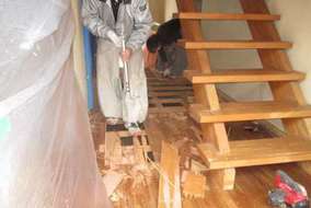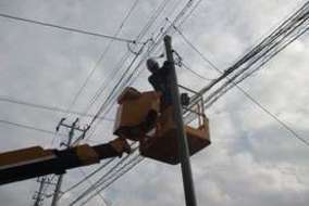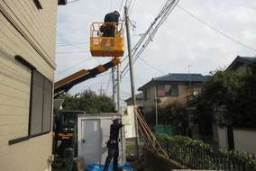 役割分担して効率よく作業します。 高所作業車も使い、電線もまとめ…